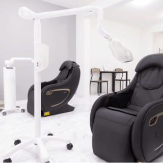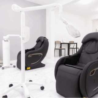 マッサージチェアに座っていただいたら、スタッフがマシンを操作しいよいよスタートです。30分の照射を2回行っていきます。照射中はマッサージされながらリラックスしてお過ごしください。