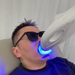 施術中は歯の着色汚れが分解され、歯自体が白くなっていきます。