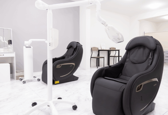 A.当店はセルフサロンですので、スタッフがお客様の歯に医療ジェルを塗ることはできません。ただし、一緒に付き添ってやり方をご案内しますので初めてでも心配いりません。ホワイトニングマシンの操作はスタッフが行いますので施術中はリクライニングソファーやマッサージチェアでゆっくりとお過ごしください。