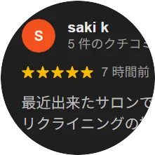 最近出来たサロンで通い始めましたか、セルフで医療ジェル使えてコスパ良いのでオススメです! リクライニングの椅子がマッサージになっててそこも個人的に嬉しいです!